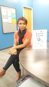 - Favorite thing about working in the writing center so far: The diversity and the culture of the writing center. The writing center is a very hospitable environment and I love to meet new students and help them. I am also being educated while being a writing tutor and this I love because education is very vital to me.
