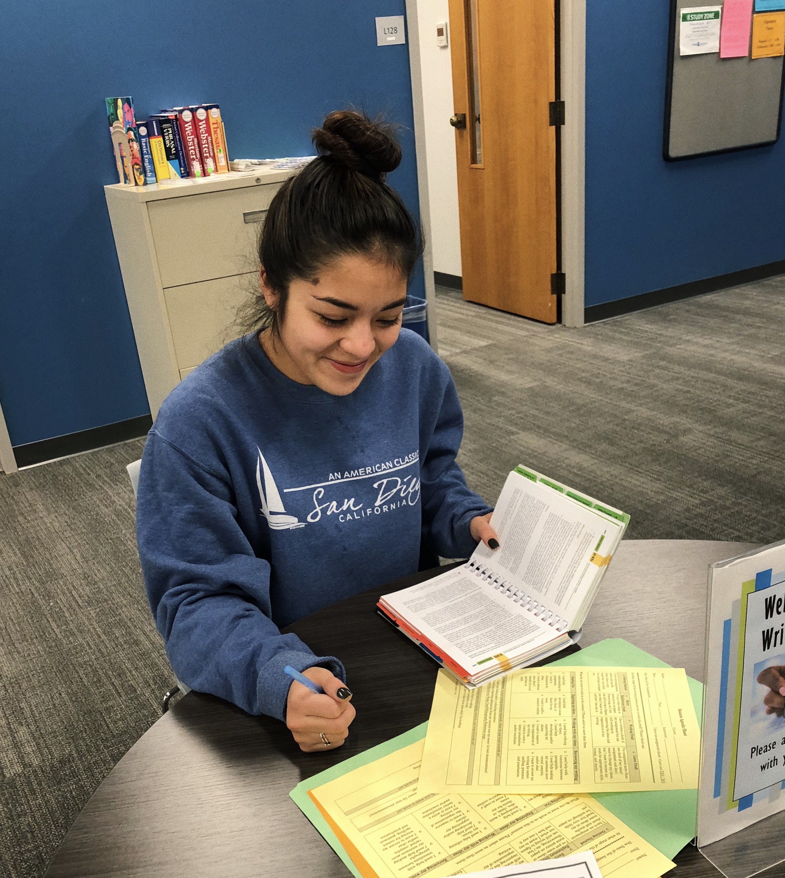 What other benefits have you gained from working in the writing center? I think that tutoring definitely expanded my knowledge of citing sources as well as expanded my resources. I didn’t know how many resources CLC offered to students such as library resources, tutors, and overall extra support like CAPS (Counseling and Psychological Services.) There was an occasion where a student came in very stressed and ready to give up on school and I knew I couldn’t let her just leave the writing center, so I suggested walking down with me to the CAPS office. (The entire tutoring staff learned about CAPS at our January kickoff meeting.)