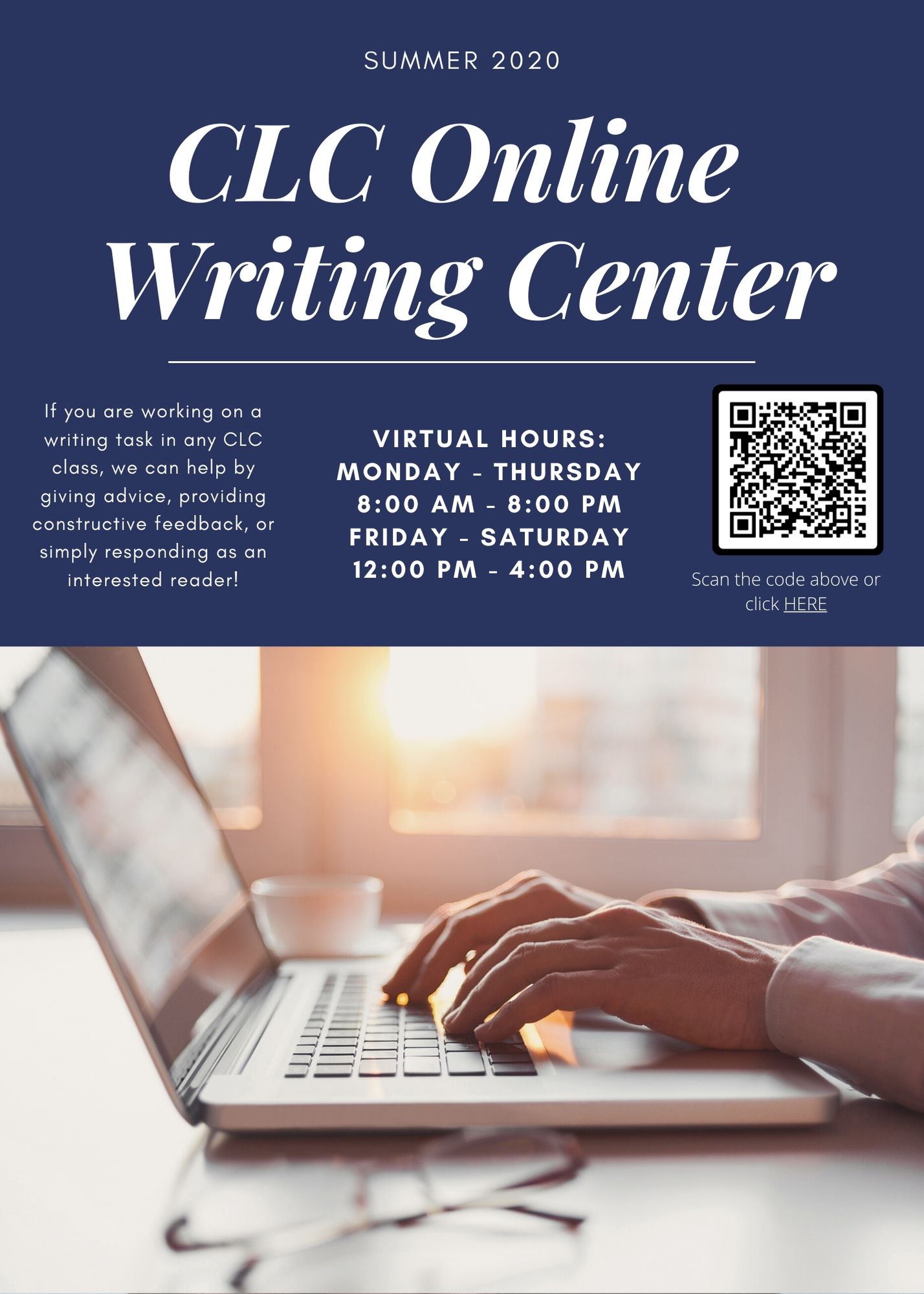 For more information and/or a link to the Online Writing Center Request Form, go to the Writing Center page of the CLC website.