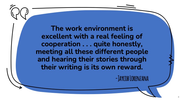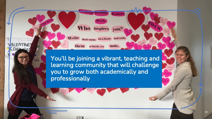 Our goal as a writing center is to hire a peer writing tutor staff that is as diverse as the writers we work with.