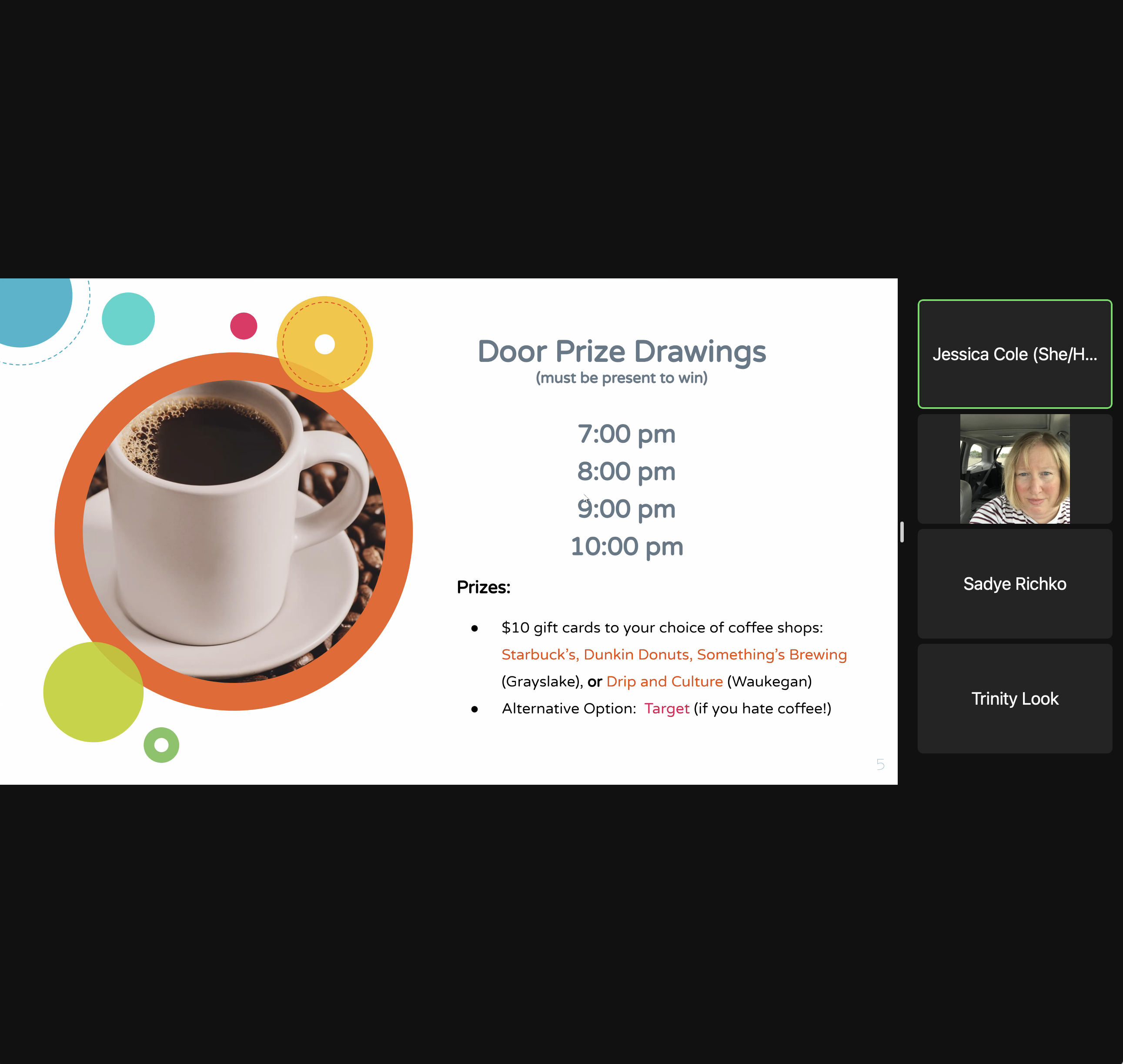 We gave out door prizes to the following student writers: