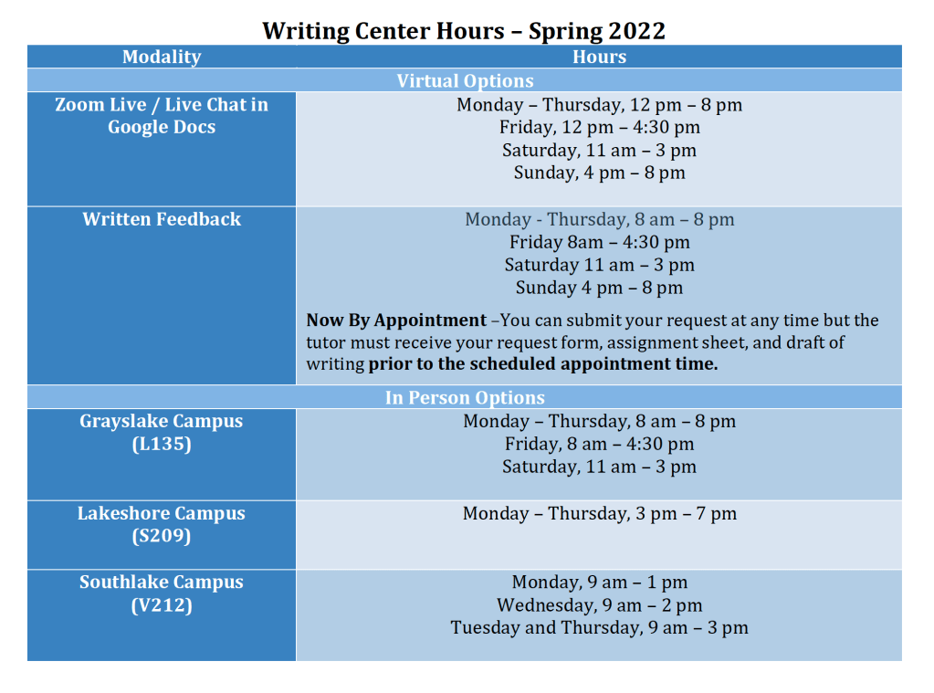 The CLC Writing Center is open and already working with students this semester. We are currently supporting writers in both in-person and online modalities.