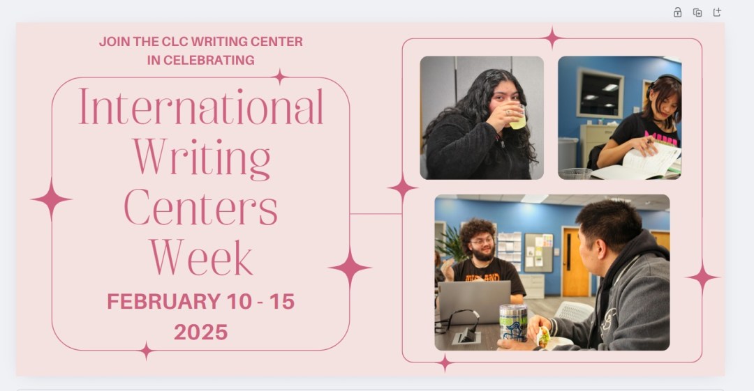 To celebrate International Writing Centers Week, the CLC Writing Center is planning several activities to promote writing center work and to raise awareness about our writing center services and upcoming events. Here are two opportunities for CLC students: