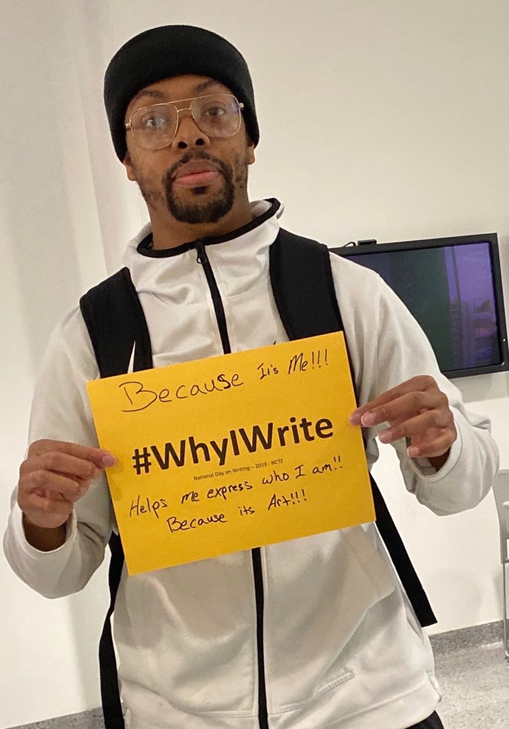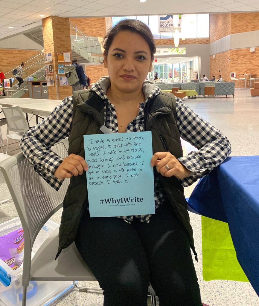 - Ask a writing center staff person to take a picture of you with your #WhyIWrite poster and we’ll post it on our Facebook and Instagram pages.