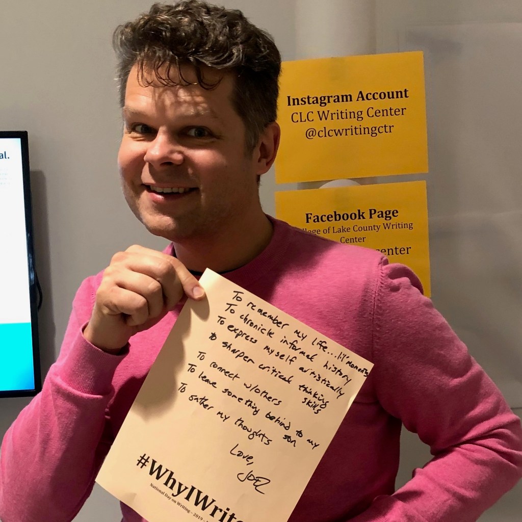 - Share a photo of yourself with the #WhyIWrite poster on Facebook or Instagram and tag the CLC Writing Center.